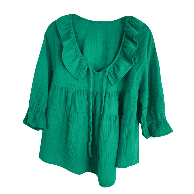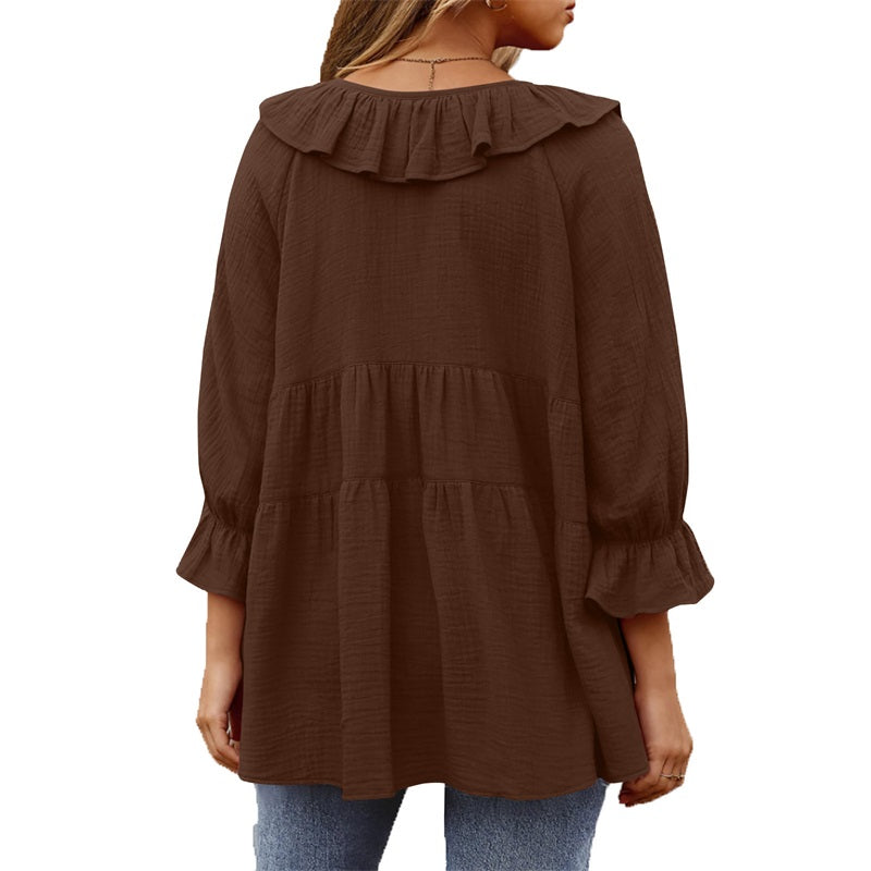 Package Includes: 1 * Women's 3/4 Sleeve Tie Front Ruffle Tiered Shirts
